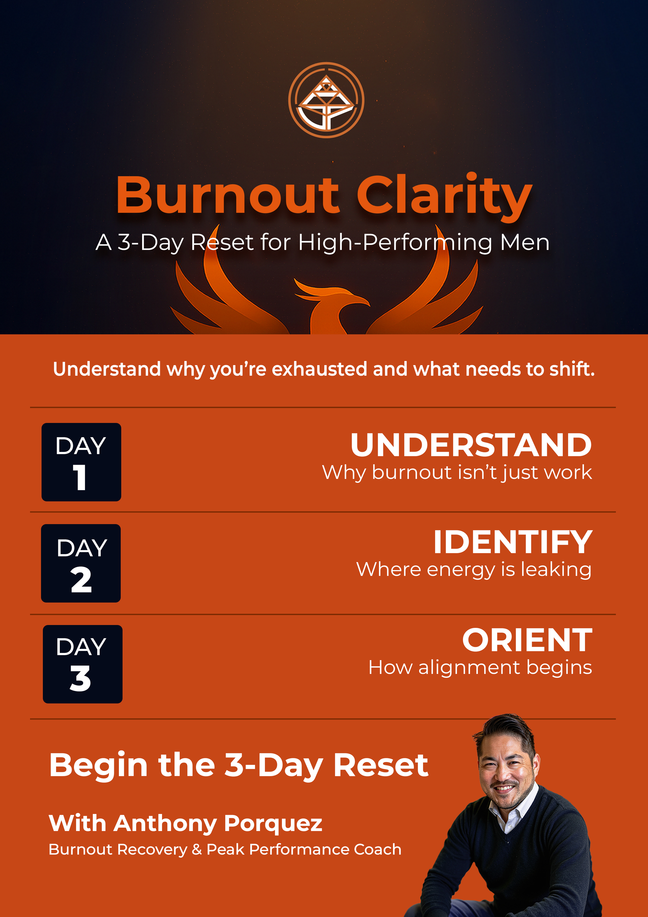 My mission is simple: to guide men through burnout and into sustainable peak performance by rewiring mindset, restoring energy, and realigning the environments they lead and live in.